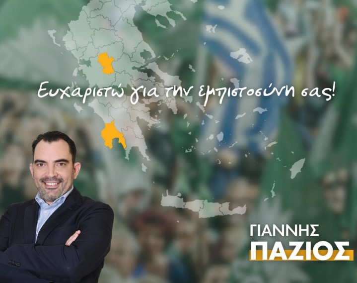 Ευχαριστήριο μήνυμα Γιάννη Πάζιου για τη στήριξη της υποψηφιότητάς του στις ευρωεκλογές