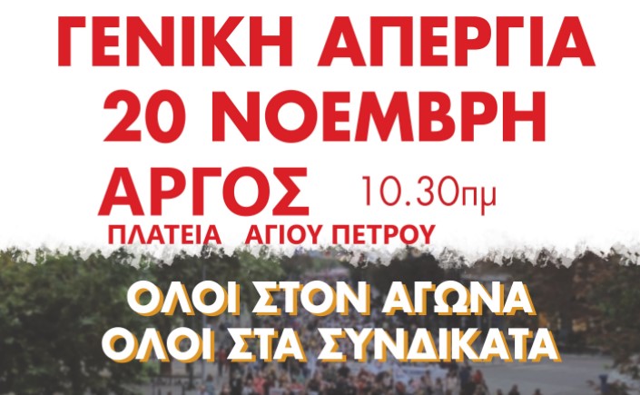 Κάλεσμα στην απεργιακή συγκέντρωση στο Άργος από το Σωματείο Ιδιωτικών Υπαλλήλων Αργολίδας