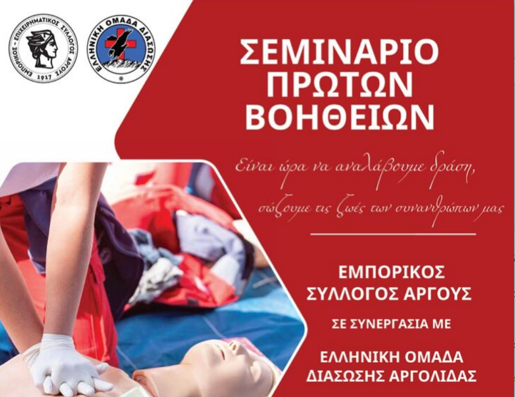 Ο Εμπορικός και Επιχειρηματικός Σύλλογος Άργους σε συνεργασία με την Ελληνική Ομάδα Διάσωσης Αργολίδας διοργανώνει στο Εργατικό κέντρο Άργους