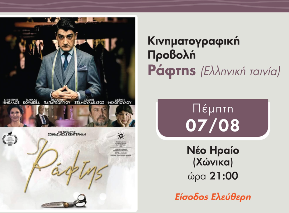Δήμος Άργους-Μυκηνών: Προβολή της ταινίας “Ράφτης” στο Νέο Ηραίο
