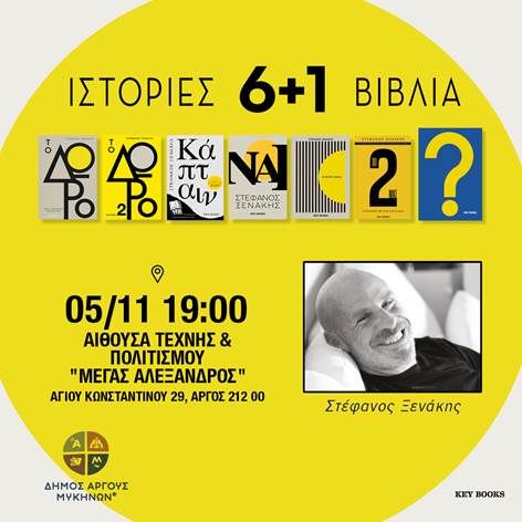 Ο αγαπημένος συγγραφέας και ομιλητής Στέφανος Ξενάκης έρχεται στο Άργος, μετά από πρόσκληση του Δήμου, για μία ομιλία στο πλαίσιο της περιοδείας του με τίτλο «Ιστορίες 6+1 Βιβλία»,