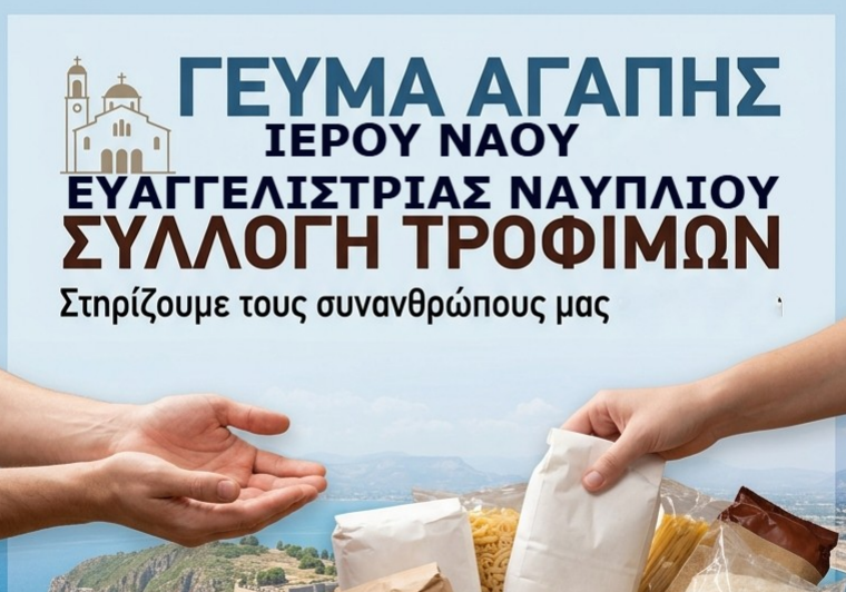Ι. Ν. Ευαγγελιστρίας Ναυπλίου: Έκκληση για την ενίσχυση του Γεύματος Αγάπης