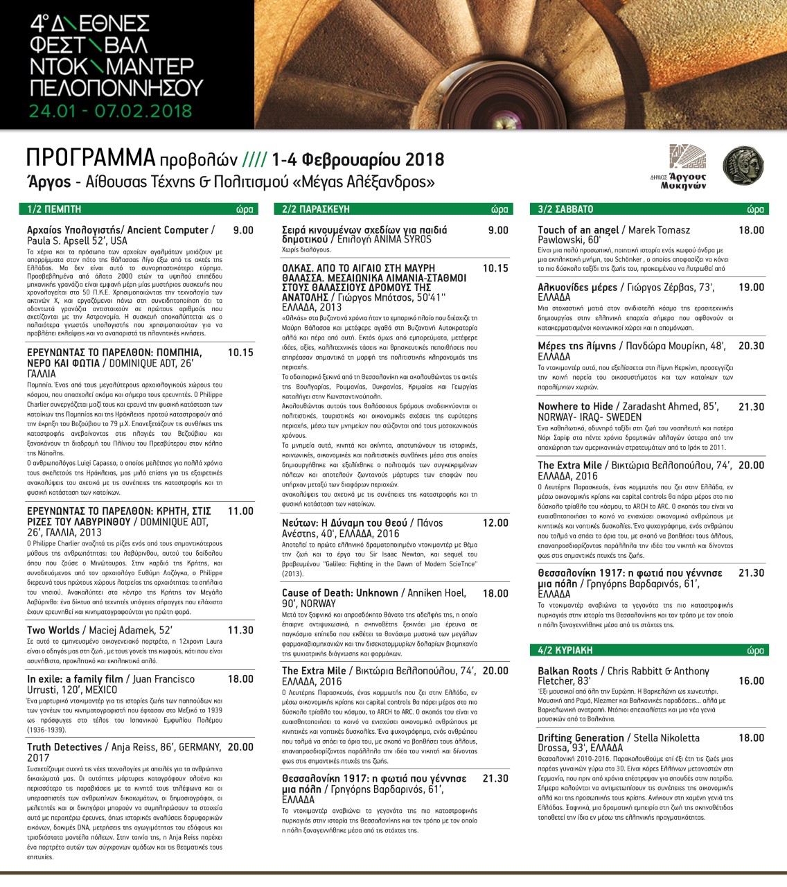 Πρόγραμμα 4ου Διεθνούς Ντοκιμαντέρ Πελοποννήσου