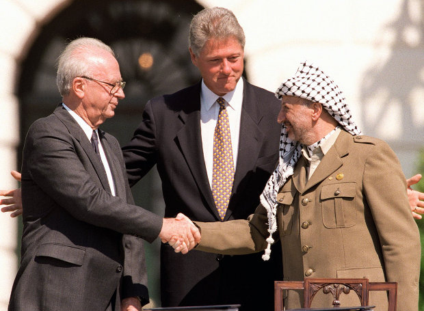 1993: Υπογράφεται η συμφωνία του Όσλο μεταξύ της PLO και του Ισραήλ. «Αρχιτέκτονες» είναι οι ηγέτες των δύο μερών, Γιάσερ Αραφάτ και Γιτζάκ Ράμπιν, υπό την αιγίδα του προέδρου των ΗΠΑ, Μπιλ Κλίντον. Αποφασίζεται η αποχώρηση των ισραηλινών στρατευμάτων από τη Δυτική Όχθη και τη Λωρίδα της Γάζας και αναγνωρίζεται το δικαίωμα των Παλαιστινίων να ελέγχουν τα του οίκου τους.