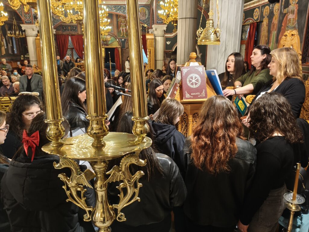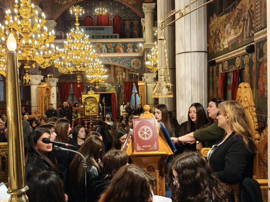 Κατανυκτική ήταν η ατμόσφαιρα στον Ιερό Ναό Ευαγγελιστρίας Ναυπλίου με την παρουσία 57 μαθητών του Μουσικού σχολείου Σερρών και πλήθους πιστών στους Γ’ Χαιρετισμούς της Θεοτόκου που πραγματοποιήθηκαν παρουσία του Σεβασμιότατου Μητροπολίτη Αργολίδας κ.κ. Νεκτάριου.