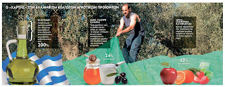 Ελιές, γιαούρτι και μέλι είναι τρία προϊόντα που σε βάθος δεκαετίας, με όπλο το ισχυρό ελληνικό brand name, κατάφεραν να κερδίσουν μερίδιο αγοράς στη διεθνή αγορά, κατακτώντας το 24% των ελληνικών εξαγωγών τροφίμων. Μήλα, μανταρίνια και φράουλες έγιναν περιζήτητα στο εξωτερικό και κέρδισαν μερίδια αγοράς με όπλο τις πολύ χαμηλές τιμές, κατέχοντας το 12% των ελληνικών εξαγωγών τροφίμων.