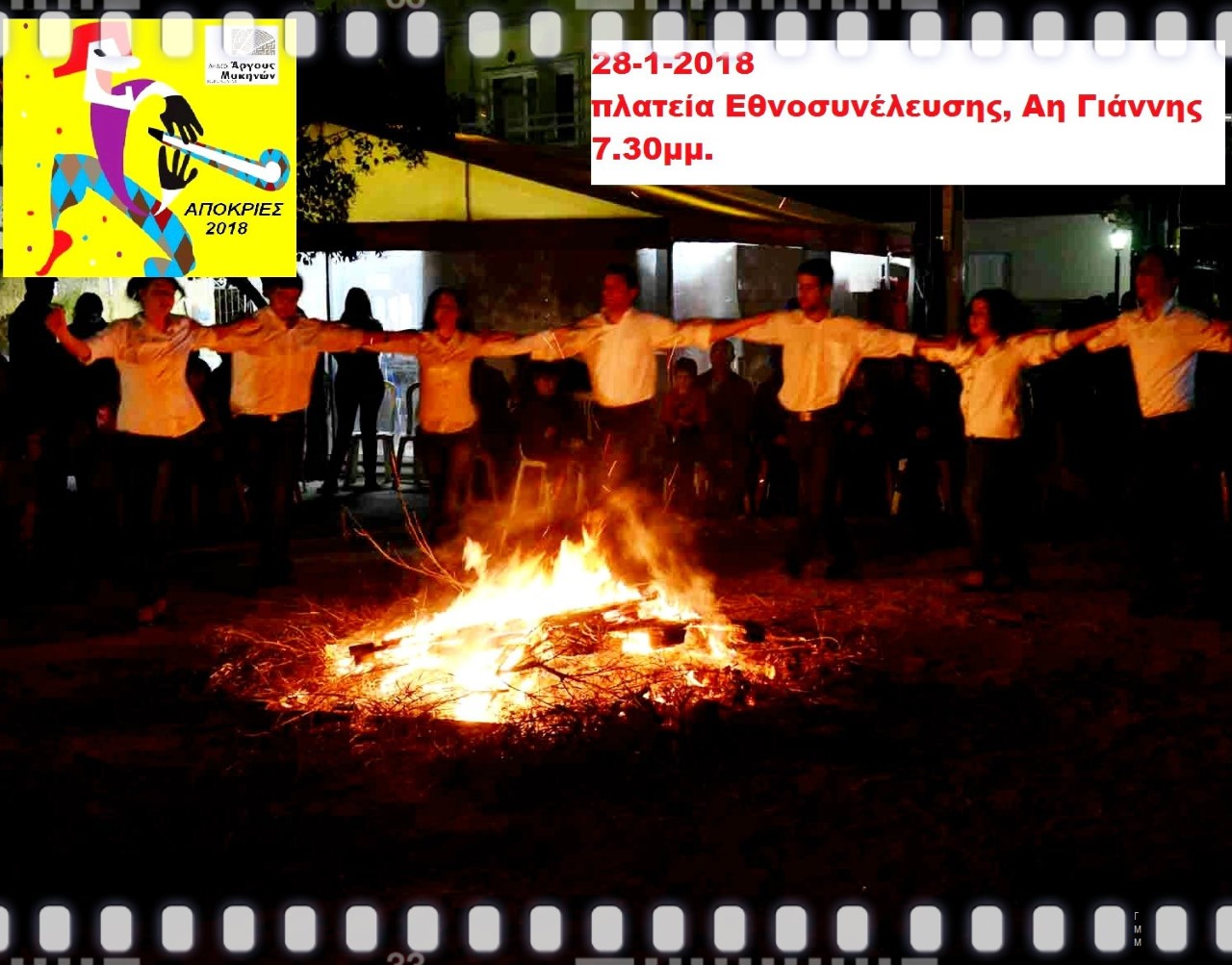 αποκριάτικη παρέα για να διασκεδάσουμε, να αστειευτούμε, να τραγουδήσουμε και να χορέψουμε γύρω από τις φωτιές. Το χορό θα ανοίξουν ομάδες από το σύλλογο ελληνικών χορών και εθνογραφικών μελετών Ελληνική Παράδοση.
