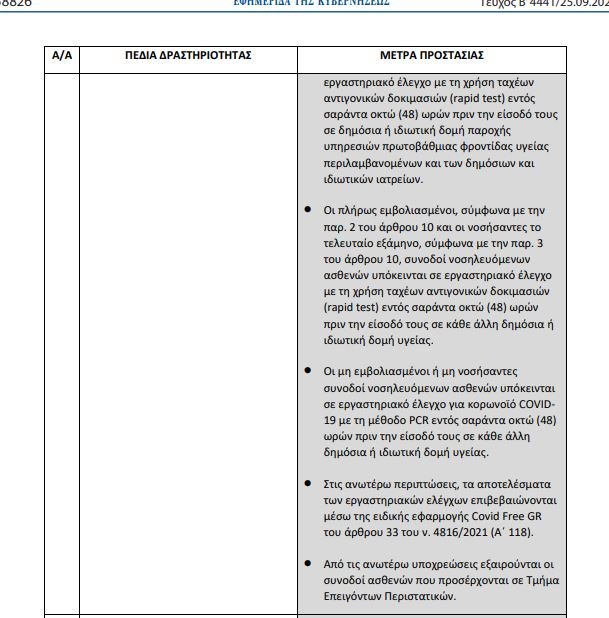 Δημοσιεύτηκε στο ΦΕΚ το Σάββατο 25/9, η Κοινή Υπουργική Απόφαση που καθορίζει τα νέα μέτρα για την αντιμετώπιση του κορονοϊού και τα οποία θα τεθούν σε ισχύ τη Δευτέρα 27 Σεπτεμβρίου