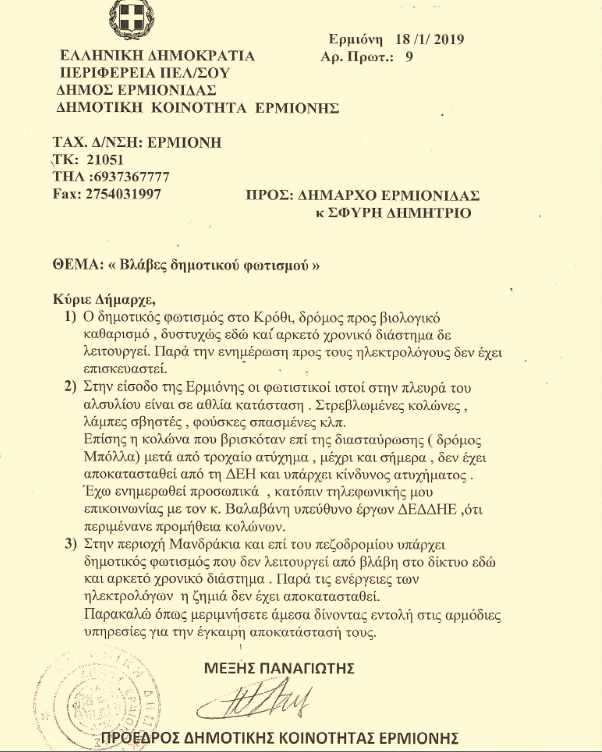 Αυτά βέβαια του τα είχε επισημάνει εδώ και καιρό η Δημοτική Κοινότητα Ερμιόνης.