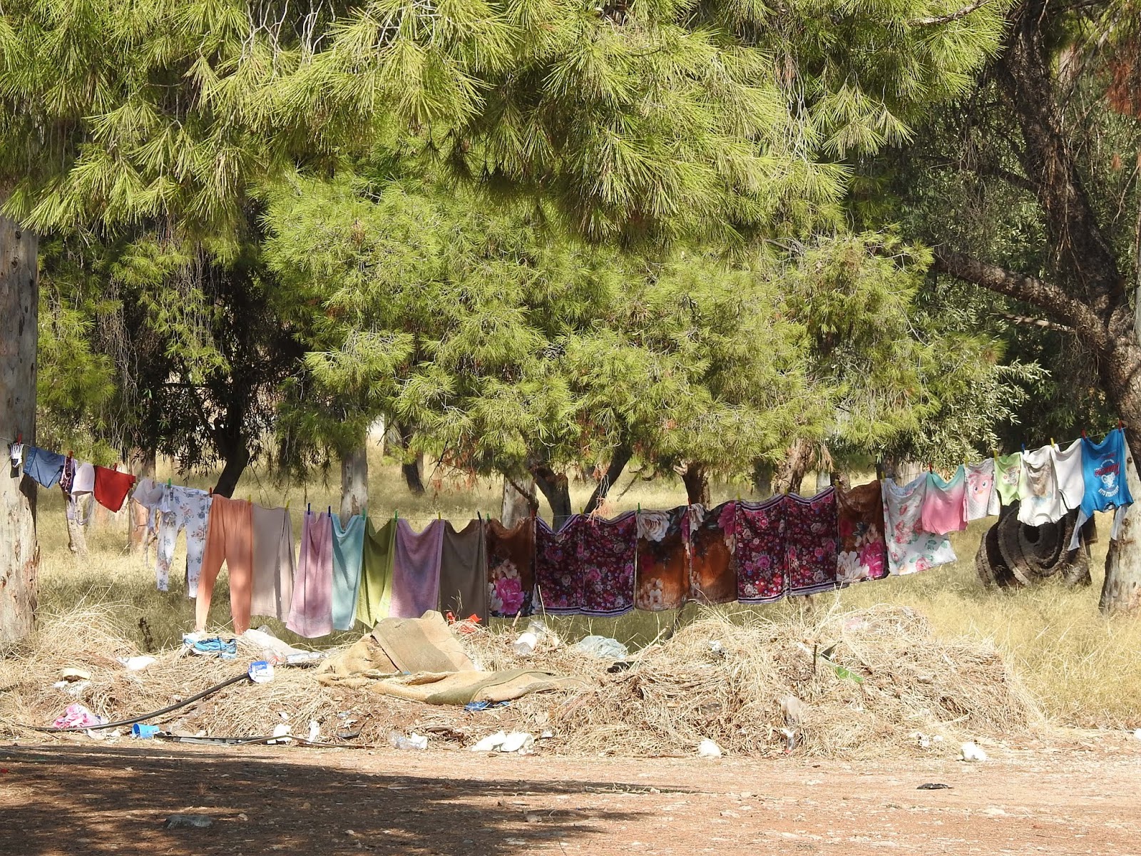 στεγνώσουν . Είναι τόσο σίγουροι για την ασφάλεια που τους παρέχει η τοποθεσία ώστε τα αφήνουν αφύλακτα και επιστρέφουν για να τα μαζέψουν όταν πλέον έχουν στεγνώσει Αυτό συνέβη και σήμερα όταν δύο νεαροί εμφανίσθηκαν και μάζεψαν την μπουγάδα με άνεση μπροστά στα μάτια των έκπληκτων περαστικών. Προφανώς η χρήση νερού που δεν χρεώνονται είναι ένα βασικό κίνητρο επιλογής της περιοχής Μέσα στην δικιά τους λογική φυσικά εντάσσεται και το ότι κάθε φορά έχουν μαζί τους και τα απαραίτητα σαμπουάν για να λούζονται μετά το μπάνιο τους…Φυσικά η περιοχή ακόμα έχει όπως θα δείτε και αρκετά σκουπίδια αλλά όλοι ελπίζουμε ότι κάποια στιγμή θα μαζευτούν Ήδη έχουν ξηλωθεί οι αφίσες .