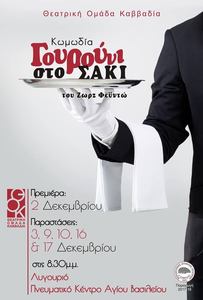 Δεκεμβρίου 2017, στις 20:30, στο Πνευματικό Κέντρο Αγίου Βασιλείου, στο Λυγουριό και θα επαναληφθεί στις 3, 9, 10, 16 και 17 Δεκεμβρίου, την ίδια ώρα και στον ίδιο χώρο.
