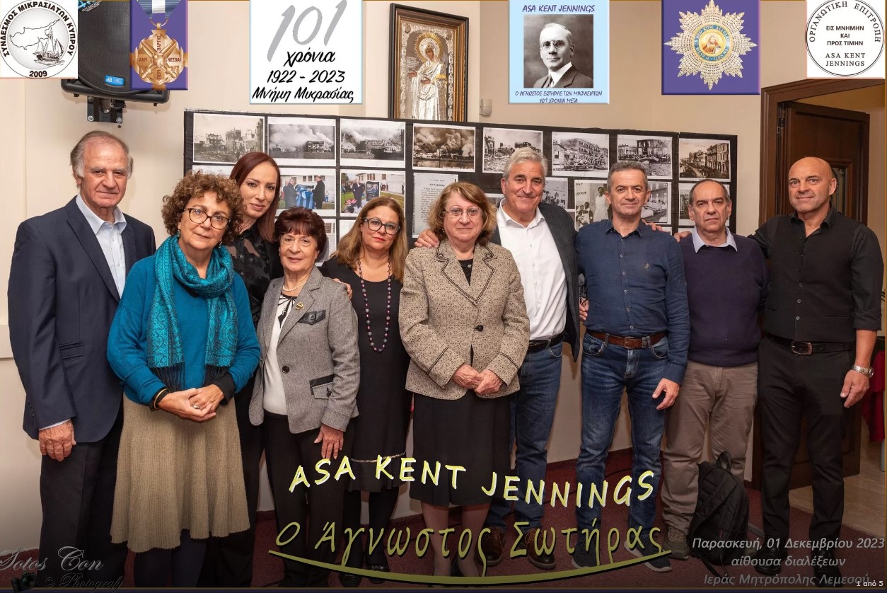 Σε κλίμα βαθιάς συγκίνησης πραγματοποιήθηκε την Παρασκευή 1η Δεκεμβρίου στην φιλόξενη αίθουσα εκδηλώσεων της Ιεράς Μητροπόλης Λεμεσού εκδήλωση τιμής αφιερωμένης στον Asa Kent Jennings με τίτλο: «Asa Kent Jennings, O Άγνωστος Σωτήρας των Μικρασιατών 101 χρόνια μέτα».