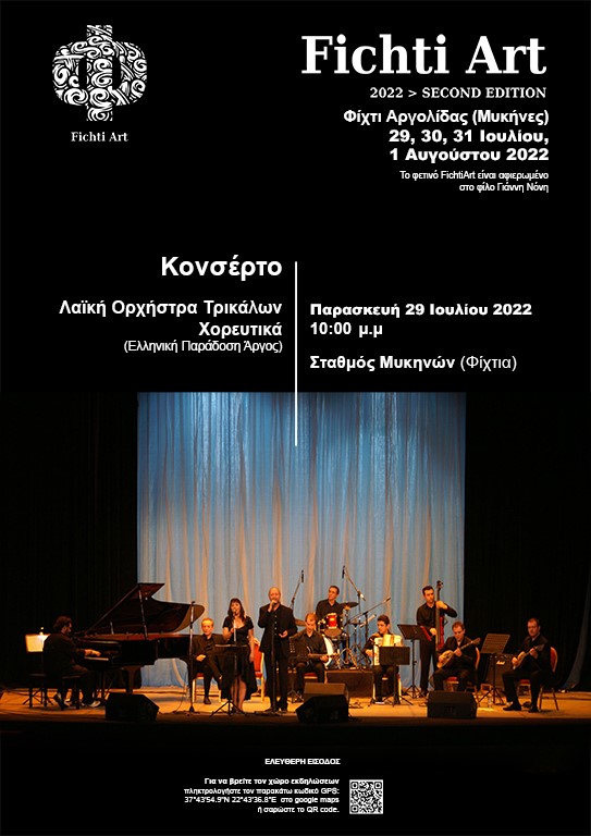 Το Fichti Art 2022 θα ξεκινήσει την Παρασκευή 29 Ιουλίου με την ανάδειξη του ιστορικού κτιρίου του Σταθμού Μυκηνών στα Φίχτια: με την έκθεση «Χτίζοντας το μέλλον» από την Αρχιτεκτονική Σχολή της Μασσαλίας, με street art από τον νέο εικαστικό Άγγελο Χατζηδημητρίου, με παραδοσιακούς χορούς και μια υπέροχη μουσική από την λαϊκή ορχήστρα Τρικάλων.