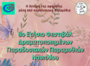 Το Σωματείο «Οι φίλοι του θεάτρου στο Ναύπλιο – Θεατροδρόμιο» σας προσκαλεί στο 8ο Φεστιβάλ Αφήγησης «Η δύναμη της αφήγησης μέσα από παραδοσιακά παραμύθια» το οποίο θα πραγματοποιηθεί