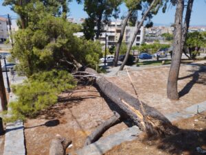 Κι άλλο πεύκο έπεσε στο παρκάκι που βρίσκεται το “Λιοντάρι των Βαυαρών”, επί της οδού Μιχαήλ Ιατρού, στο Ναύπλιο που ανέδειξε και άλλα προβλήματα στην περιοχή