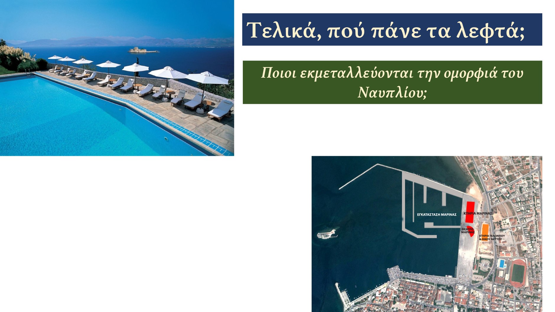 Η τουριστική ανάπτυξη του Ναυπλίου έχει γίνει το ομαδικό φετίχ της πόλεως. Όποια άλλη αναπτυξιακή πρόταση απορρίπτεται ασυζητητί.