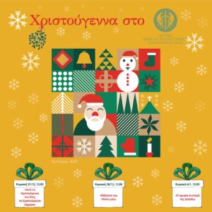 Κάθε Κυριακή των γιορτών, το εκπαιδευτικό τμήμα του Ιδρύματος Βασίλη Παπαντωνίου προσκαλεί τα παιδιά σε ένα διαφορετικό, ξεχωριστό χριστουγεννιάτικο εκπαιδευτικό πρόγραμμα στο Μουσείο