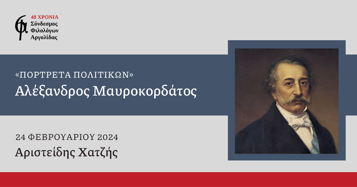 Σύνδεσμος Φιλολόγων Αργολίδας: Η 2η διαδικτυακή διάλεξη στα «Πορτρέτα πολιτικών» για τον Αλέξανδρο Μαυροκορδάτο ΠΕΡΙΣΣΟΤΕΡΑ » 14/02/2024