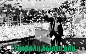 1989: Ο Ανδρέας Παπανδρέου, στη διάρκεια συγκέντρωσης στο Περιστέρι, αναφωνεί το περίφημο «Τσοβόλα, δώσ’ τα όλα». 20/04/2022 ΠΕΡΙΣΣΟΤΕΡΑ »