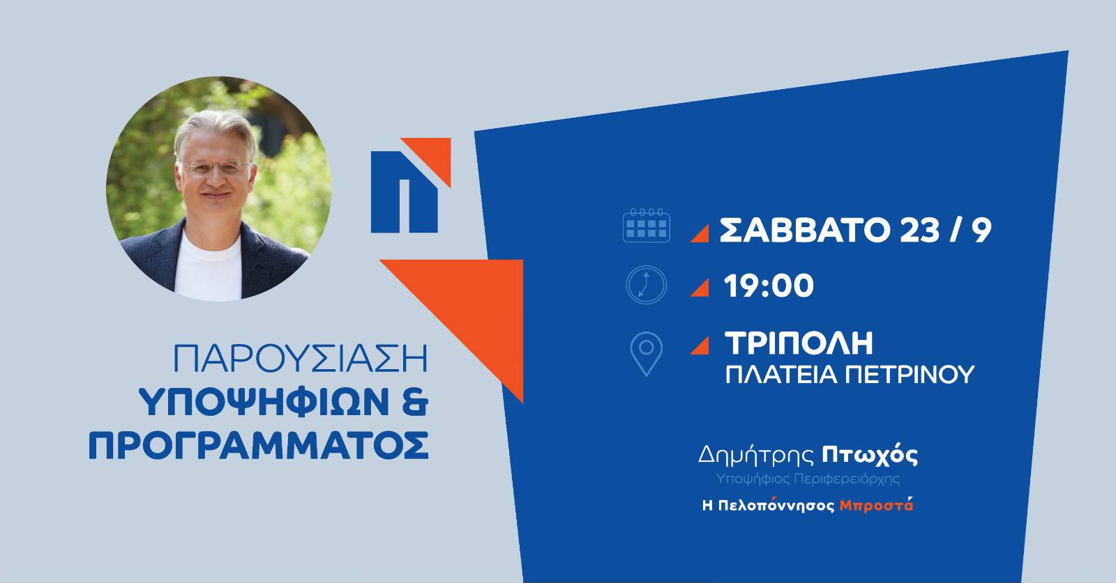Live Streaming η παρουσίαση του προγράμματος για την Πελοπόννησο από τον Δημήτρη Πτωχο ΠΕΡΙΣΣΟΤΕΡΑ » 23/09/2023
