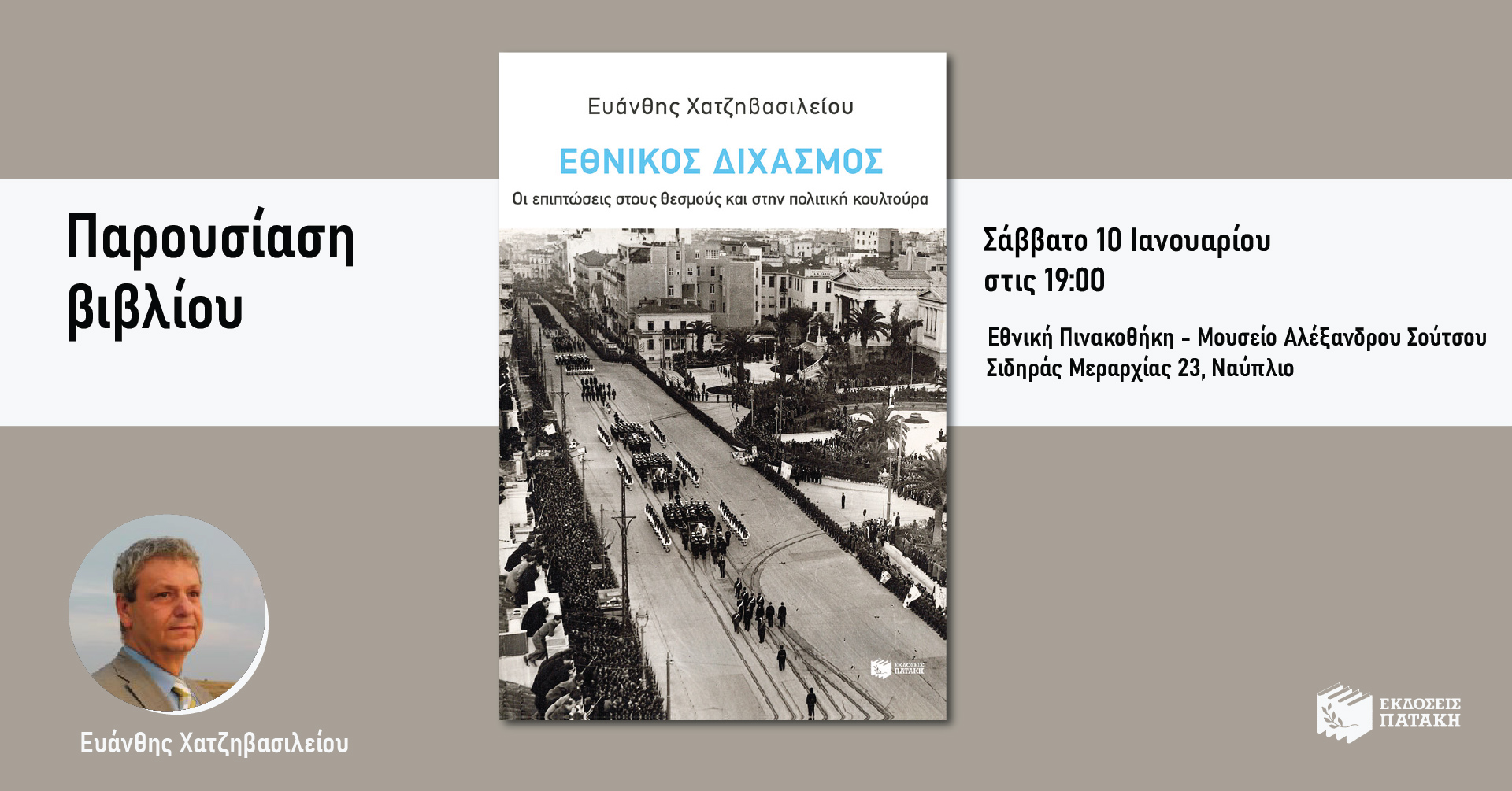 Παρουσίαση του βιβλίου του Ευάνθη Χατζηβασιλείου «Εθνικός Διχασμός, Οι επιπτώσεις στους θεσμούς και στην πολιτική κουλτούρα» (Εκδόσεις Πατάκη)