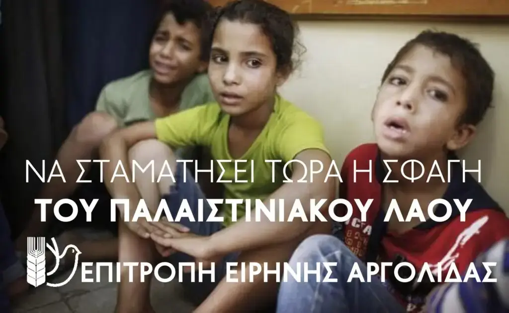 Επιτροπή Ειρήνης Αργολίδας: Ανακοίνωση για την χερσαία επέμβαση και τους βομβαρδισμούς του Ισραήλ στην Πόλη της Γάζας