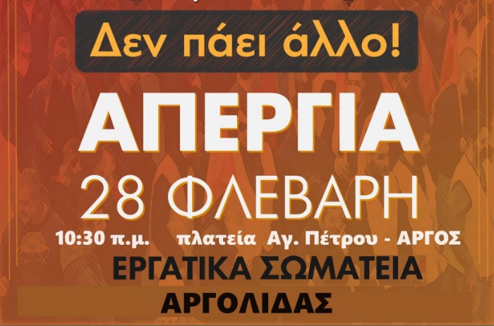 Σωματείο Ιδιωτικών Υπαλλήλων Αργολίδας: «Δίνουμε όλες μας τις δυνάμεις για την επιτυχία της Απεργίας στις 28 Φλεβάρη»