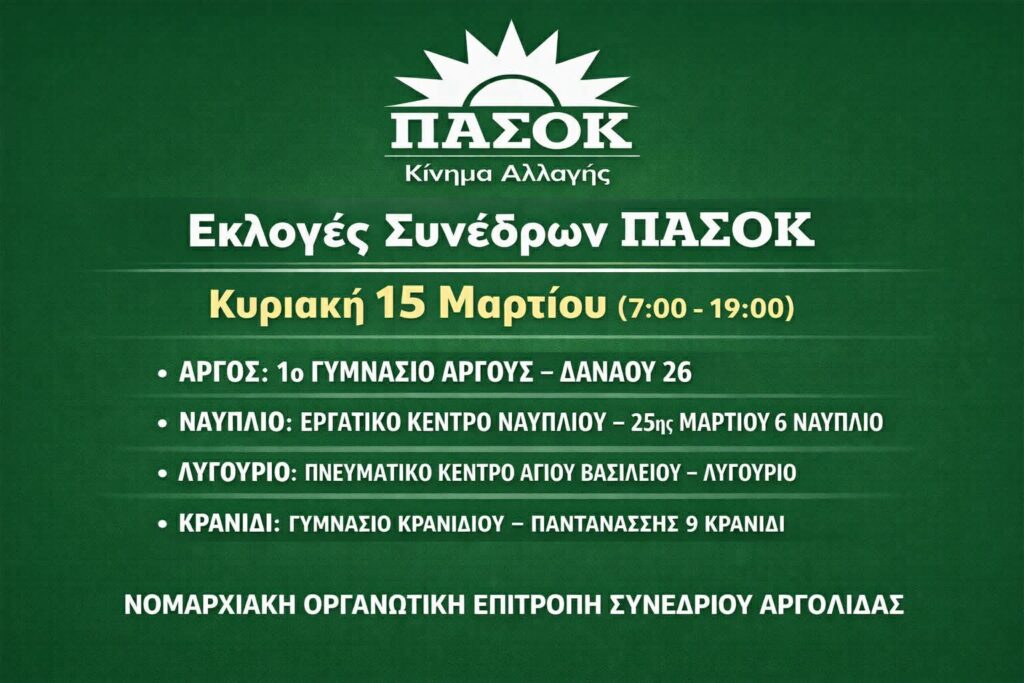 Αργολίδα: Την Κυριακή οι εκλογές Συνέδρων του ΠΑΣΟΚ – Τα εκλογικά κέντρα και όλα τα ονόματα των ψηφοδελτίων
