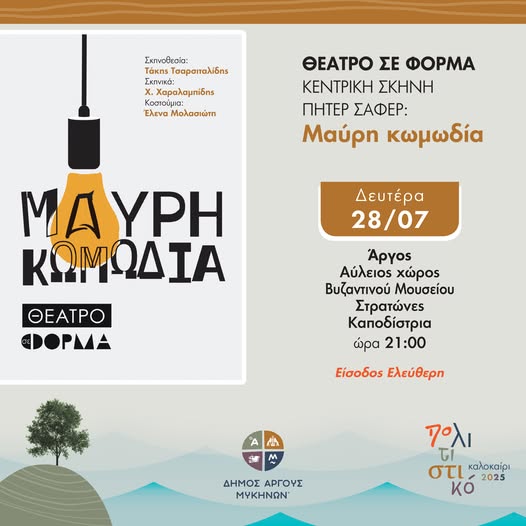 Πολιτιστικό Καλοκαίρι Άργους-Μυκηνών 2025: Σήμερα (28/7) η “Μαύρη Κωμωδία” από το ΘΕΑΤΡΟσεΦΟΡΜΑ